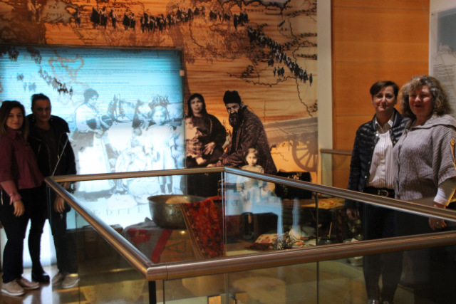 Οι κυρίες της ιματιοθήκης της ΕΛΒ ξεναγήθηκαν στο μουσείο και τα εκθέματα (φορεσιές, στέφανα γάμου, σερβίτσια, κεντήματα, μηχανές ραπτικής)